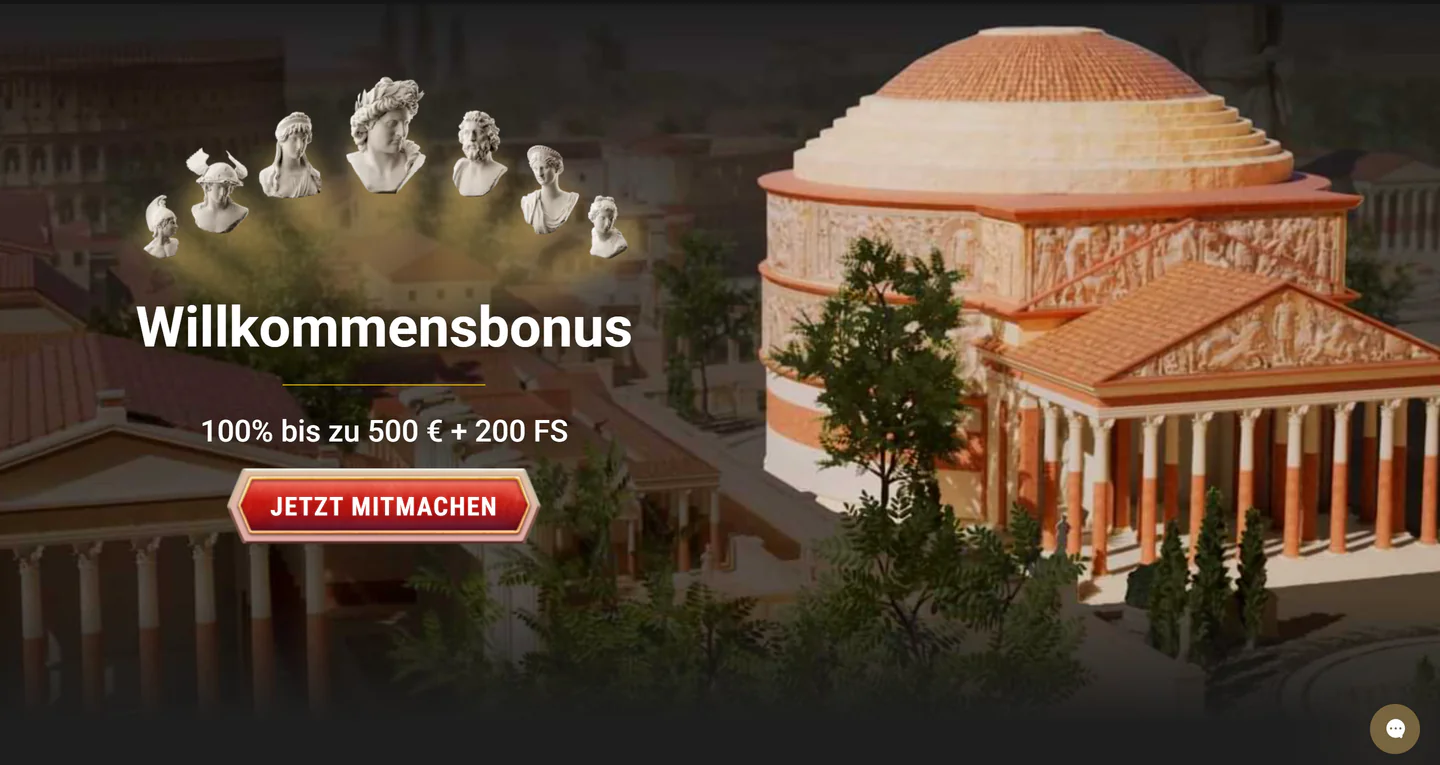 - Live Casino: 100+ Live-Tische mit professionellen Dealern in römischem Ambiente