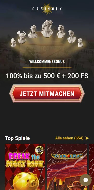 Neue Spieler bei Casinoly profitieren von einem der großzügigsten Willkommenspakete im deutschen Online-Casino-Markt. Der Bonus beläuft sich auf 100% bis zu 500 € auf die erste Einzahlung plus 200 Freispiele obendrauf. Die Freispiele werden dabei schrittweise über mehrere Tage ausgezahlt, was für kontinuierliche Spielfreude sorgt.